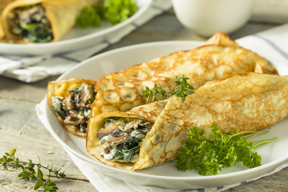 Geniş bir tavayı ocağa alın. Tava iyice ısınınca Hüner Ayçiçek yağı ve mantarları ilave ederek mantarları 10 dakika kadar soteleyin. Sarımsak, tuz, karabiber, maydanoz ve pul biberi ekleyerek 1 dakika kadar kavurun. Önceden doğradığınız ıspanakları ekleyerek 2 dakika kadar ıspanakları öldürün. Ocağın altını kapatarak rendelenmiş kaşar peynirini ekleyin. Hazırlamış olduğunuz harcı önceden pişirmiş olduğunuz kreplerin içerisine koyarak sarın. Dilerseniz kreplerin üzerine rendelenmiş peynir serperek 5 dakika fırınlayıp servis edebilirsiniz.